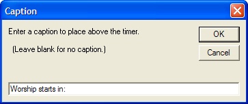 Caption DialogAfter pick the ending time, you will be asked for an optional caption. You can leave it blank, or enter any text you wish to display. |